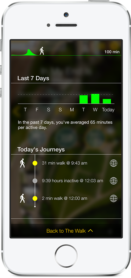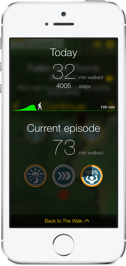 The Walk is a smartphone fitness game and audio adventure released on 11 December 2013. It combines exciting gameplay with a high-octane thriller story, encouraging players to walk more every day. When you're playing The Walk, every single step counts in a journey that will save the world.With 65 episodes containing intricate, fully-illustrated maps, 800 minutes of audio story and hundreds of collectible items to explore the world of the story, The Walk is more than just a pedometer — it's a way to turn walking into a journey, a challenge, and a rip-roaring adventure. And you can use The Walk whatever your level of fitness or mobility, thanks to the game's 'adaptive fitness' system which adjusts to your own fitness levels and gives rewards for gradually increasing how much you move every day.